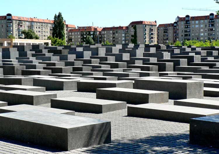 Βρίσκεται δίπλα από την πύλη του Βραδενβούργου, ένα τεράστιο μνημείο για τα θύματα του Ολοκαυτώματος. Τα στενά δρομάκια του ανάμεσα στα ‘μνήματα’ θυμίζουν λαβύρινθο και αξίζει να τα περπατήσει κάποιος και να συλλογιστεί. Οι Εβραίοι της Ευρώπης ήταν τα κύρια θύματα του Ολοκαυτώματος.